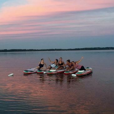 private group classes; SUP yoga, paddle board lessons, 50/50 (yoga & paddle), sup & sip.
